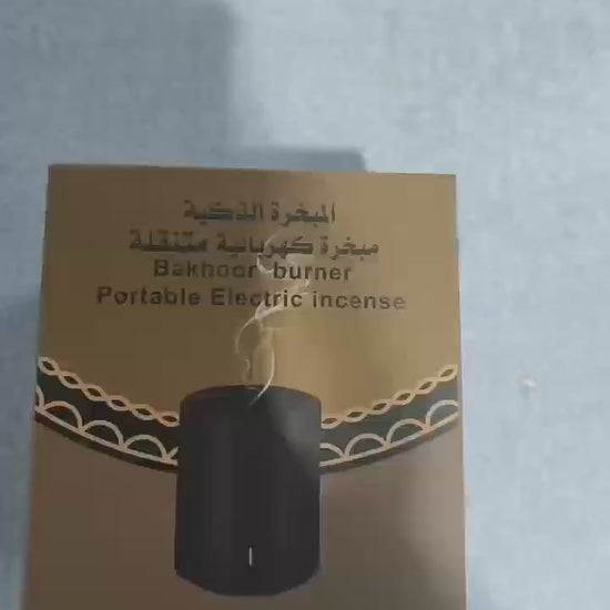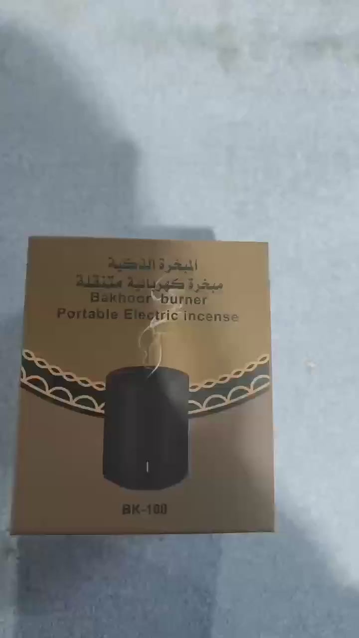 Portable Electric Bakhoor Burner – A sleek, rechargeable incense burner designed for clean and smokeless heating of bakhoor or oud. Perfect for use at home, in the car, or while traveling.
